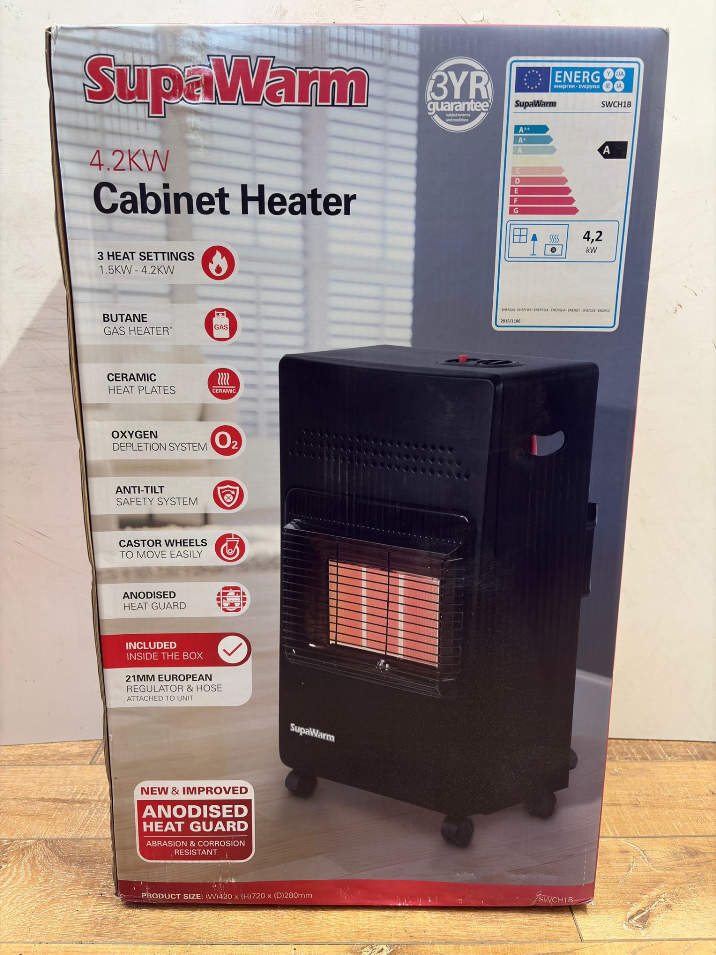 Powerful, efficient, and easy to use, the 4.2kW SupaWarm Gas Heater provides instant heat for medium to large rooms. Featuring adjustable heat settings, built-in safety controls, and a sleek, portable design, perfect for the colder months.